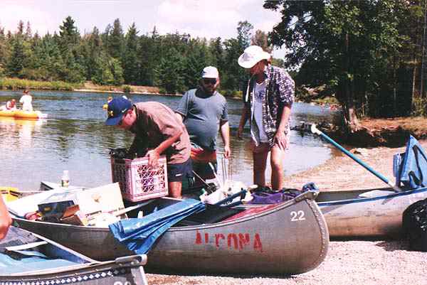 Starting to fill the canoes. How are we going to fit all this in 3 canoes? |