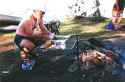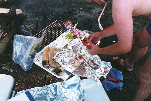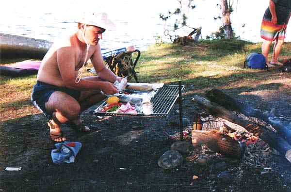 Chef Don preparing our fish steaks. Yeah, this is roughing it! |