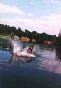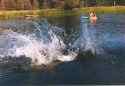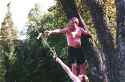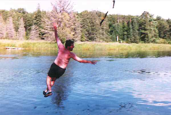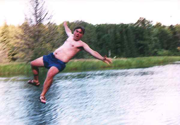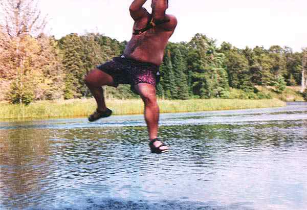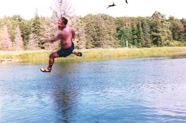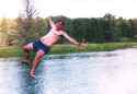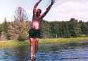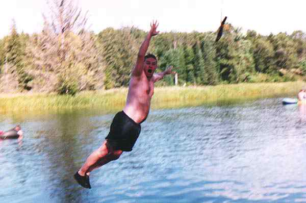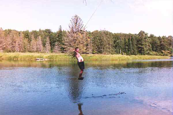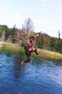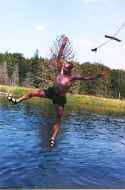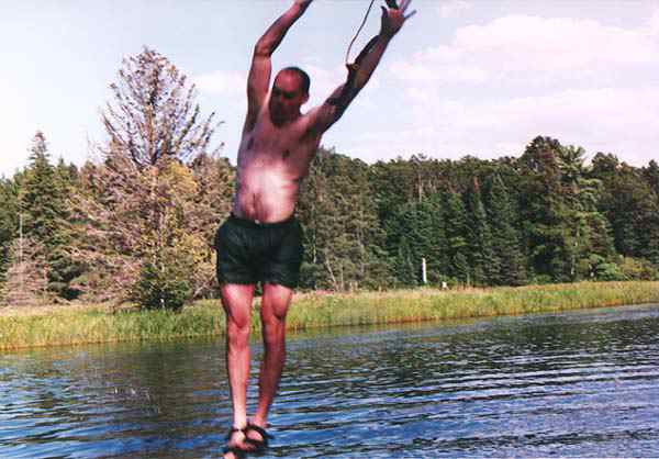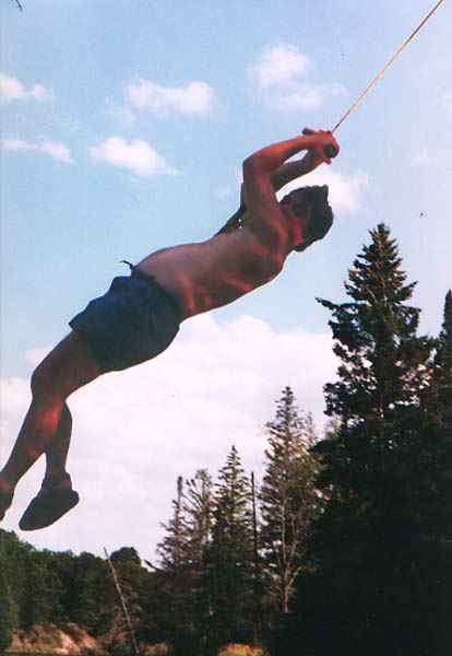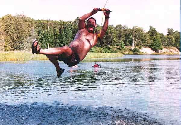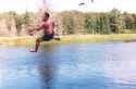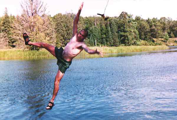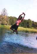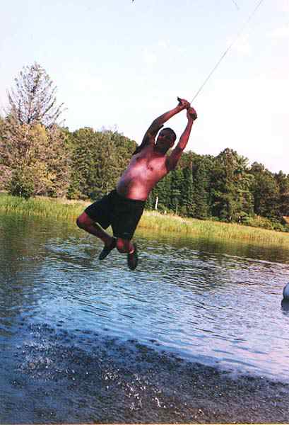Now here is a picture of Bob amazingly leaping OUT of the water up to the rope! What an athelete. |