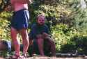 Bob shows us the proper pose for the swing. Legs tucked in, arms bent... |