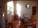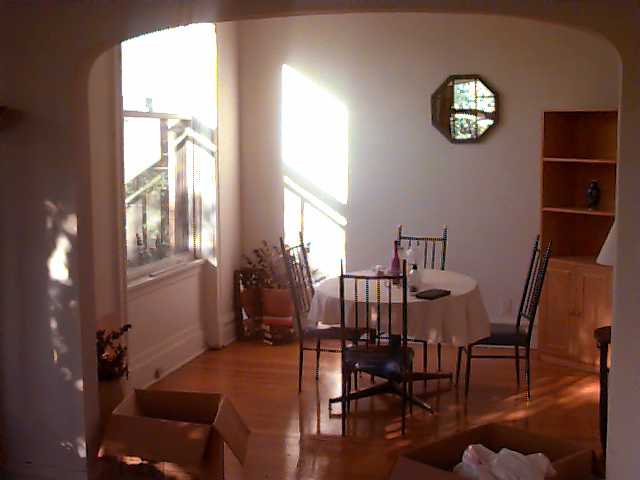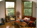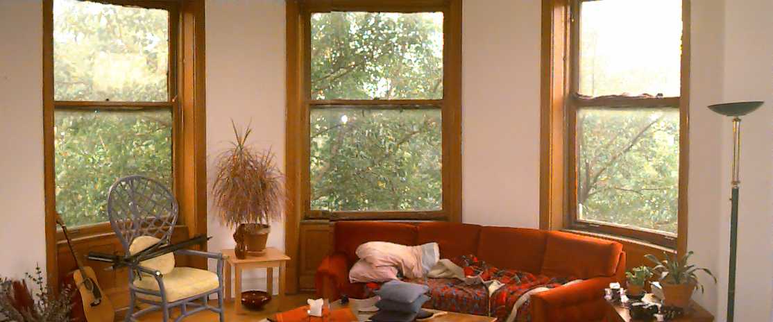 Here is a picture of our living room. If you look close at the windows. They are actually curved. Even the glass is curved! Great light and a great view. |